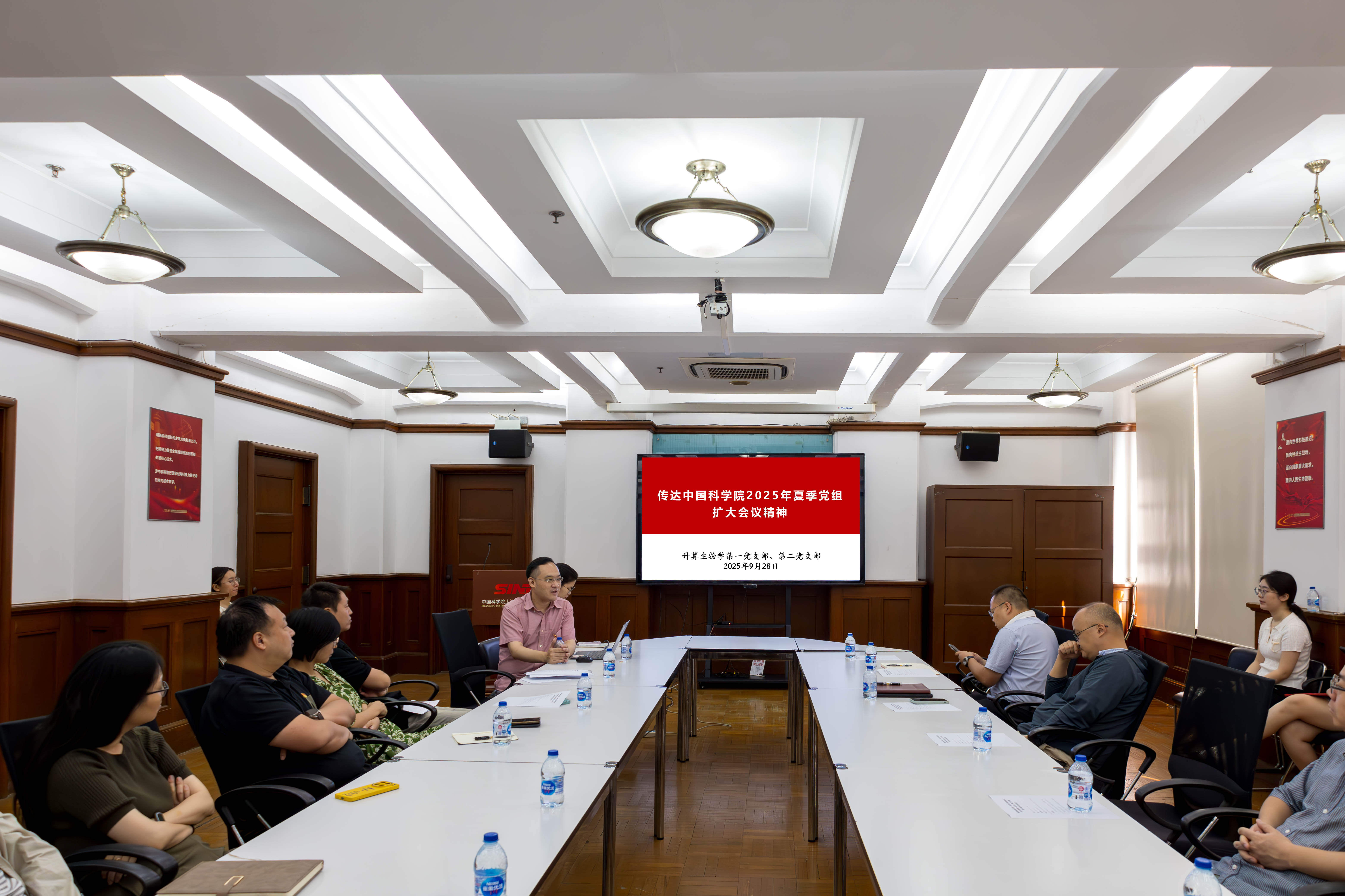 為推進黨建與科研工作深度融合,9月28日,中國科學院上海營養與健康研究所計算生物學第一、第二黨支部聯合開展“建強科研戰斗堡壘·加快搶占科技制高點”主題黨日活動,會議邀請研究所所長、黨委副書記汪思佳傳達宣貫中國科學院2025年夏季黨組擴大會議精神并作黨課報告,支部全體黨員參加會議。