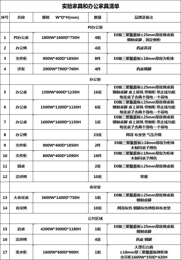 4、項目內(nèi)容和要求:完成辦公家具制作和安裝,項目完成后達到建設單位使用要求、并符合相關現(xiàn)行制度及規(guī)范《GB18584-2001室內(nèi)裝飾裝修材料木家具中有害物質(zhì)限量》等;建議參選單位仔細現(xiàn)場踏勘。