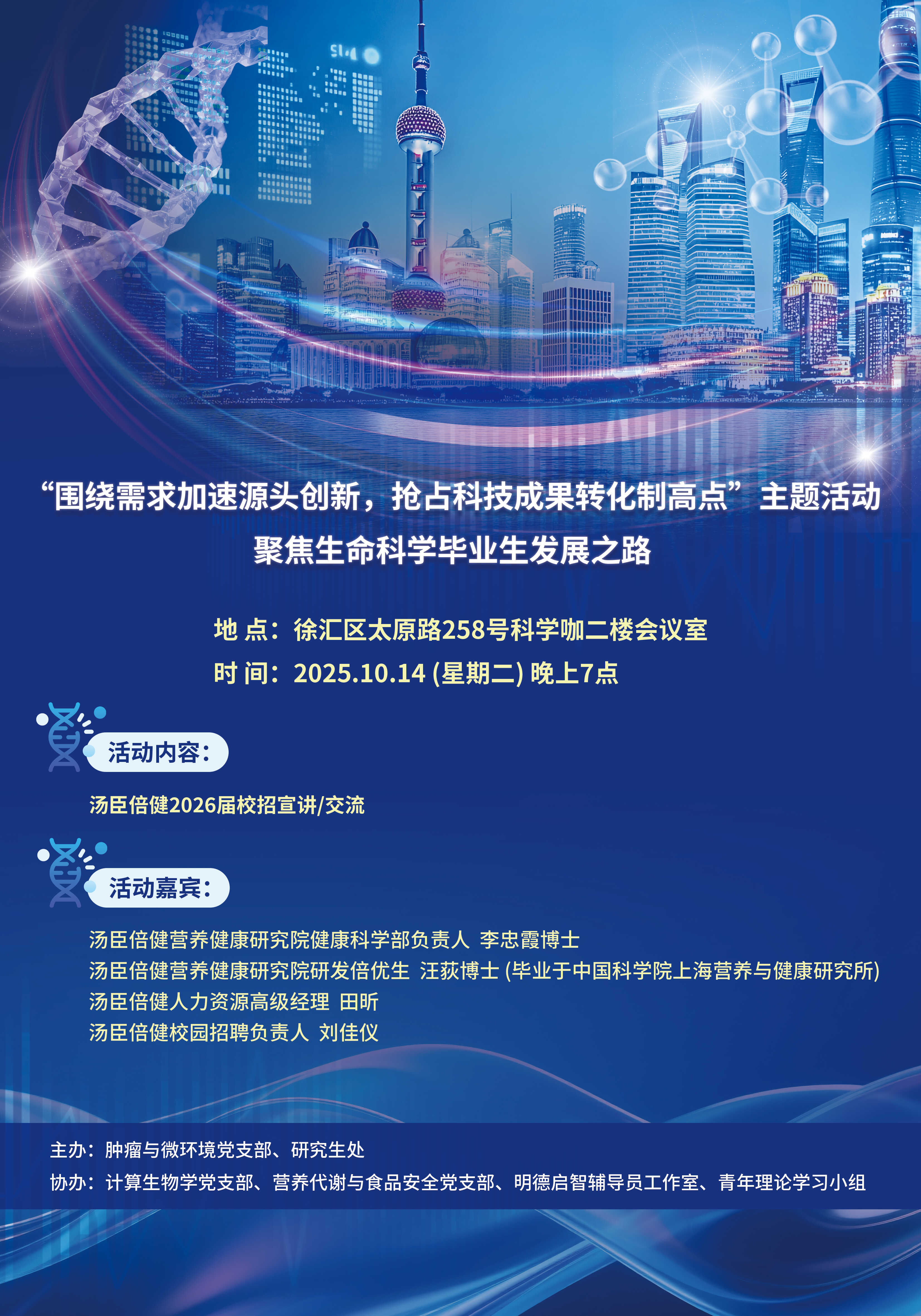 10月14日|聚焦生命科學畢業生發展之路-湯臣倍健2026屆校招宣講交流